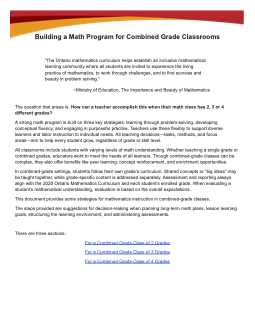 This document supports teachers in planning and delivering effective math programs in combined-grade classrooms, offering strategies and examples aligned with Ontario’s math curriculum.