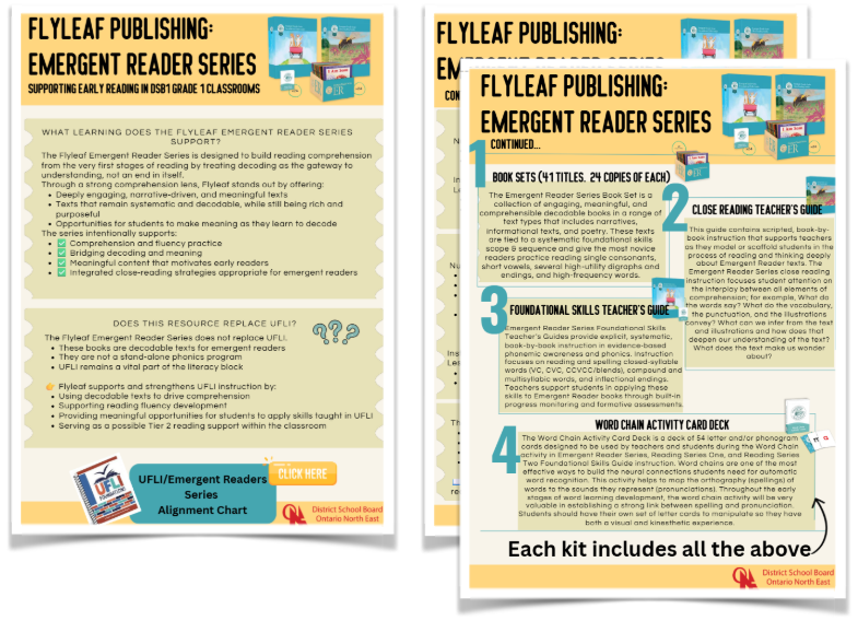Materials have been provided to Grade 1 teachers. Please reach out to your administrator and/or the Learning and Teaching Team for more information.